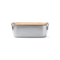 Ланч-бокс из нержавеющей стали 304 с бамбуковой крышкой с системой закрытия с помощью боковых пряжек. Большая емкость 1 л для хранения продуктов.