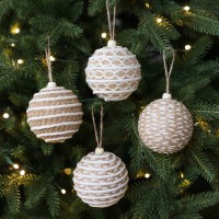 Новогодние шары созданы из легкой пены, обернутой шнурами джута, они настолько легкие, что ветви новогодней защищены от провисания.