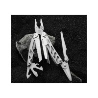 Корпус мультитула выполнен из высококачественной нержавеющейстали, устойчивой к коррозии и механическим повреждениям. Оноснащён прочными складными элементами, включая нож, плоскогубцы,отвертки, ножницы, открывалки и пилу. Все инструменты легкораскладываются и фиксируются, обеспечивая безопасность в процессеиспользования.