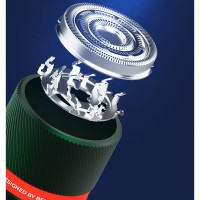 Модель оснащена одной роторной бритвенной головкой с 21встроенным лезвием, что обеспечивает аккуратное и точное удалениещетины. Такая конструкция позволяет эффективно обрабатыватьтруднодоступные участки и повторять контуры лица. Нержавеющая стальножей гарантирует долговечность и стабильную работу устройства.Поддерживается сухое и влажное бритьё, а уровень влагозащиты IPX7позволяет промывать головку под водой для удобной очистки.