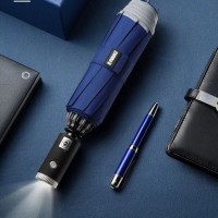 Автоматический зонт с конструкцией обратного складывания длязащиты от протекания воды.Спицы из нержавеющей стали выдержат дажесильные порывы ветра.Купол выполнен из водоотталкивающейткани.Диаметр зонта в развернутом состоянии 107 см.Светоотражающаялента по краям купола повышает видимость человека в темноте исумерках.В ручку зонта встроен фонарик.