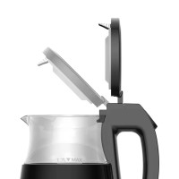 Корпус функционального электрочайника выполнен из прочногостекла. Стекло не боится резких перепадов температуры, способновыдерживать повышенную нагрузку. Внутренняя поверхность выполненаиз нержавеющей стали, не подвержена коррозионным процессам