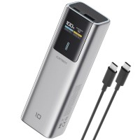 CUKTECH PB100P — это компактный, но мощный power bank с ёмкостью10000 mAh и максимальной мощностью 150 Вт. Он предлагает порт USB?Cс USB?PD (до 120 Вт) и порт USB?A с Quick Charge (до 33 Вт), чтопозволяет одновременно заряжать ноутбуки, смартфоны, планшеты идругие устройства.