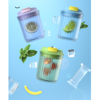 Невероятно стильный дизайн в трендовых оттенках: виноградный фиолетовый, мятный синий и зелёное яблоко - это яркий билет в солнечное лето - поднимет настроение, а содержимое избавит от жажды.