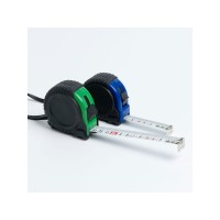 3-метровая рулетка с фиксирующим механизмом. Цветной прорезиненный, металлический зажим и ремешок для переноски.