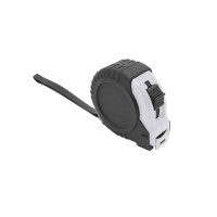 5-метровая рулетка с фиксирующим механизмом. Цветной прорезиненный корпус с резиновым чехлом, металлический зажим и ремешок для переноски.
