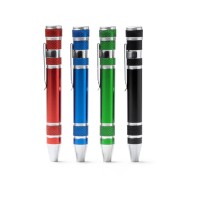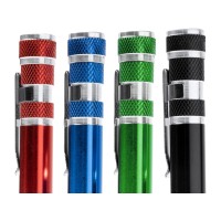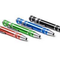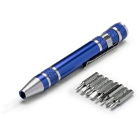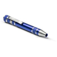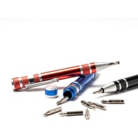 Алюминиевый мультитул в форме ручки. В комплекте 8 головок бит