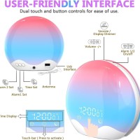 Многофункциональный светильник с имитацией восхода солнца —ключ к здоровому сну и бодрому пробуждению без стресса! Совмещает функции будильника с плавным пробуждением, ночника, устройства для комфортного засыпания, декора. Лёгкое пробуждение с имитацией рассвета. Подсветка включается за 10–60 минут до будильника, свет постепенно усиливается, имитируя естественный рассвет. Цвет свечения меняется от тёплых тонов к холодным дневным, сочетаясь со звуками природы (пение птиц, шум океана и др.). Мягкое пробуждение, снижение стресса, прилив энергии. Комфортное засыпание с имитацией заката. За несколько часов до сна, светильник плавно уменьшает яркость, цвет переходит от холодных тонов к тёплым, имитируя закат, создавая расслабляющую атмосферу. 12 цветовых эффектов, FM-радио, звуки природы, белый шум и мягкая музыка. LED- дисплей. Интуитивный интерфейс. Резервное питание от батарейки. Материал – ABS.